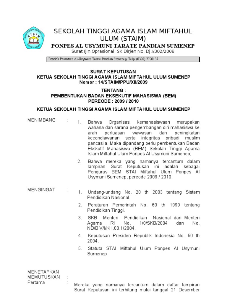 Surat permohonan merupakan surat yang dibuat oleh individu atau instansi secara resmi yang ditujukan kepada pihak lain dengan tujuan meminta bantuan. Jika tujuan surat pengajuan surat ke putusan untuk pengangkatan pengurus baru, maka lampirkan daftar pengurus tersebut. 2 cara mudah membuat sk yang baik dan benar di microsoft word. Badan eksekutif mahasiswa (bem) stit al urwatul wutsqo jombang. Pada umumnya, kita bisa mendapatkan surat rekomendasi dari pihak lain ataupun dari pejabat yang berwenang di.