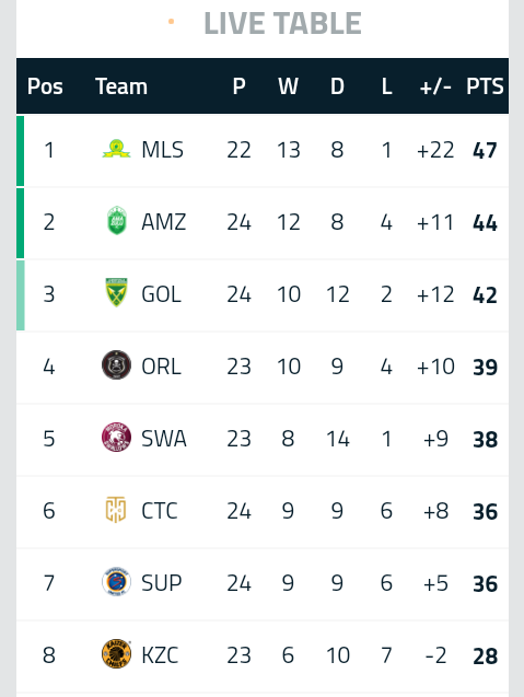 Sofascore tracks live football scores and dstv premiership table, results, statistics and top scorers.